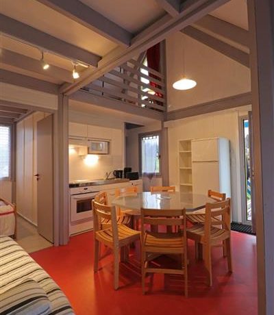 Dans un complexe touristique de 65 hectares. Gîte N°1 indépendant à ossature bois. Rez de chaussée : Séjour avec coin cuisine (four, micro-ondes), coin salon (clic-clac 2 pers.), 1 chambre (1 lit de 2 personnes), salle d’eau. wc indépendant. Étage : Mezzanine (3 lits 1 personne). Terrain et plan d’eau non clos. Chauffage électrique. Réduction pour 2 ou 3 semaines consécutives : PRIX POUR 3 SEMAINES : 678€ en basse saison, 851€ en MS, 1141€ en juillet août UN SEUL CHIEN DE MOINS DE 10 kg ACCEPTE MAIS VACCINE (forfait semaine 15€). Électricité au delà de 15kw/jour non incluse ATTENTION : BAIGNADE INTERDITE en Aout 2025 à cause d’un problème de qualité d’eau.