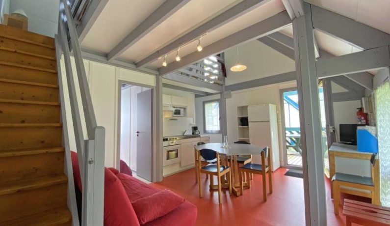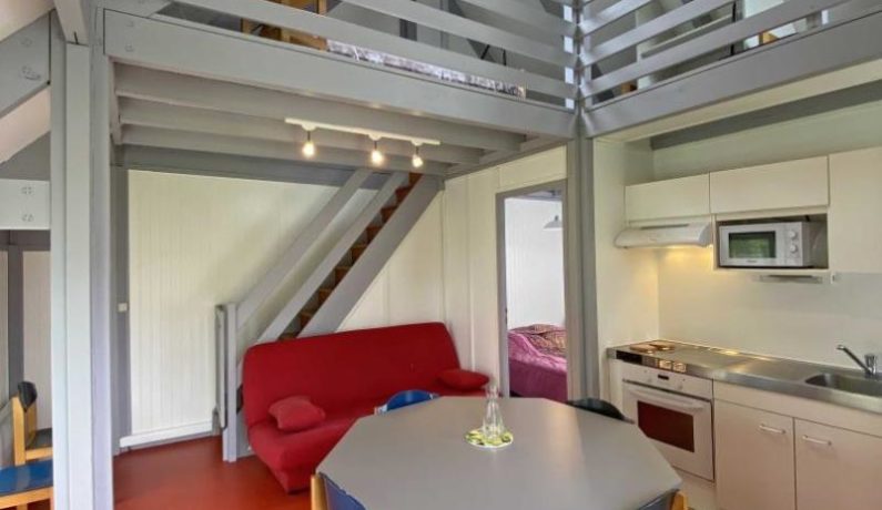 Dans un complexe touristique de 65 hectares. Gîte N°6 indépendant à ossature bois. Rez de chaussée : Séjour avec coin cuisine (four, micro-ondes), coin salon (clic-clac 2 personnes), 1 chambre (1 lit de 2 personnes), salle d’eau. WC indépendant. Étage : Mezzanine (3 lits 1 personne). Terrain et plan d’eau non clos. Chauffage électrique. Réduction pour 2 ou 3 semaines consécutives : PRIX POUR 3 SEMAINES : 678€ en basse saison, 851€ en MS, 1141€ en juillet août UN SEUL CHIEN DE MOINS DE 10 kg ACCEPTE MAIS VACCINE (forfait semaine 15€) Électricité au delà de 15kw/jour non incluse ATTENTION : BAIGNADE INTERDITE en Aout 2025 à cause d’un problème de qualité d’eau.