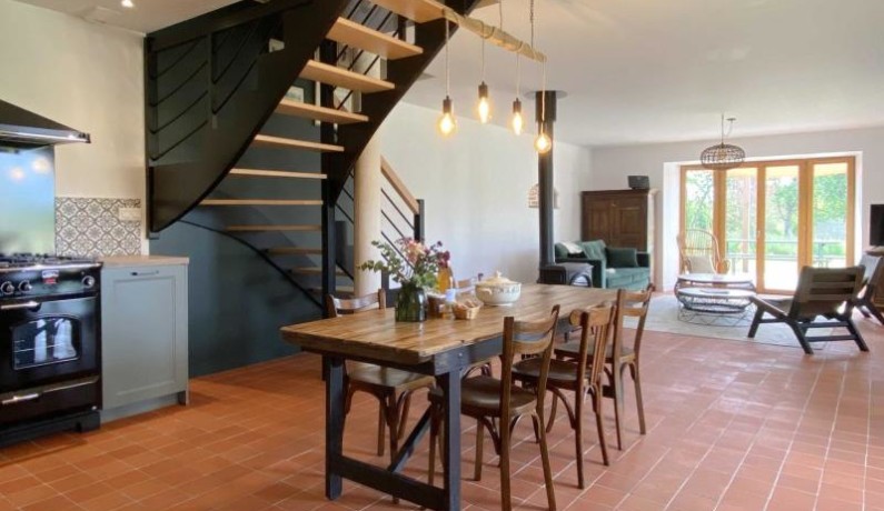 Maison de pays indépendante en formule tout inclus : Au rez-de-chaussée, un séjour/cuisine lumineux avec espace salon et poêle, une buanderie et un wc indépendant. Station Bluetooth. À l’étage, 2 chambres (2 lits faits 2 pers 180 cm séparables) avec salle d’eau et wc privatifs à chaque chambre, dont une avec wc séparés. Possibilité lit d’appoint 1 personne sur demande. La piscine couverte (9x5m, prof. max. 2m), chauffée toute l’année par géothermie, se situe à l’étage d’un bâtiment voisin. Vous y trouverez également un spa 3 à 5 places ainsi qu’une grande terrasse avec vue sur le bocage Normand. L’espace détente est ouvert tous les jours de 8h à 22h avec un créneau horaire à définir en fonction de l’autre gite sur place. Barbecue extérieur, terrain de pétanque, jeux pour enfants sont à votre disposition sur le domaine. Borne électrique pour voiture sur place.