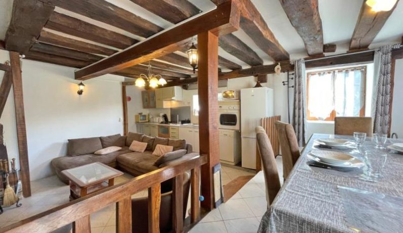Maison mitoyenne dans un petit hameau tranquille. Rez de chaussée : séjour (poêle) avec cuisine. 1er étage : salon en rez de jardin (bureau, TV par la box, lecteur DVD et home cinéma) avec canapé lit 2 personnes, salle d’eau avec wc et lave-linge. 2nd étage : 1 chambre (lit 2 personnes, TV), 1 chambre (lit 2 personnes, canapé lit 1 personne, lit bébé). Chauffage électrique inclus. Jardin clos de 200 m², balançoire et trampoline (trampoline uniquement aux beaux jours). Verger 6000 m² (puits) non attenant avec parking. Chats et petits chiens acceptés. Clientèle professionnelle non souhaitée.