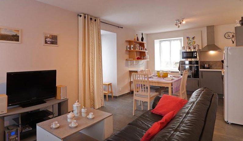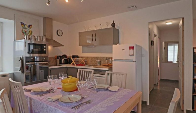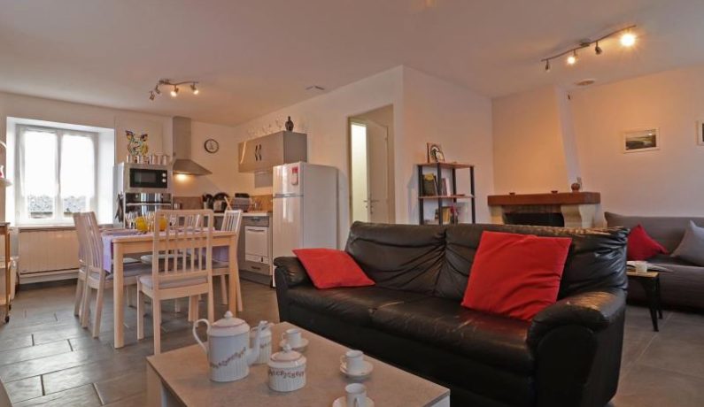 Maison indépendante de plain pied avec perron : séjour avec coin salon (cheminée avec bois fournis) et cuisine toute équipée, chambre (lit fait 2 personnes 160 x 200 cm séparable avec sur-matelas), chambre (2 lits faits 1 personne), salle d’eau, wc indépendant. Chauffage électrique inclus. Jardin clos 1000 m².
