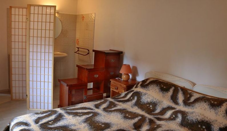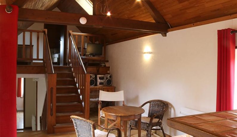 Maison de pays semi-indépendante. En rez-de-jardin : entrée (laverie), 1 chambre (2 lits 1 personne en 80 cm jumelables, lavabo). 1er demi-étage : salle d’eau avec wc, 1 chambre (2 lits 1 personne en 80 cm jumelables). 1er étage : séjour avec coin cuisine (insert). 2ème demi-étage : 1 chambre (1 lit 1 personne). Chauffage électrique, accès à jardin commun de 800 m². DRAPS FOURNIS.