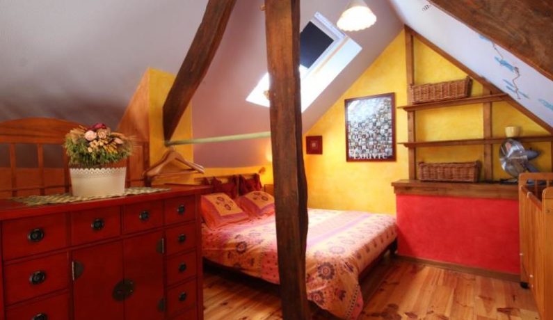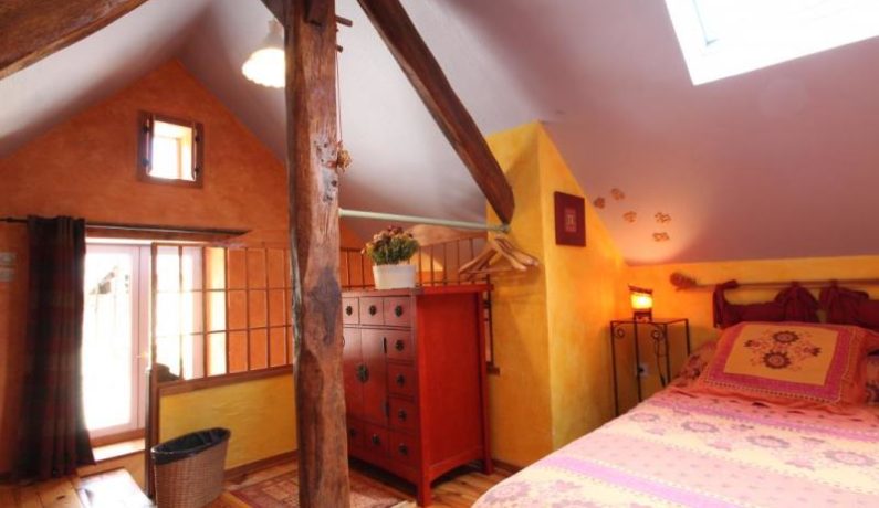 Four à pain en granit du 18ème dans un hameau typique et calme. Paysage bocagé de vallons verdoyants. A proximité : méandres de la Rouvre, site muséo. Roche d’Oëtre, accrobranches, maison du paysage. Au choix : pêche, kayak, vélo, rando. Gîte douillet et gai, déco soignée : véritable nid d’amour! Ancienne boulangerie du 18ème. Rdc : séjour (convertible BZ, DVD, mini-chaine) avec cuisine intégrée ouverte, salle d’eau, wc. Etage : 1 chambre non cloisonnée (1 lit 2 pers. 160 cm, 1 lit bébé, chauffeuse d’appoint). DRAPS FOURNIS et lits faits. Chauffage central écologique compris. Terrasse privée sur terrain 500 m² (transats)