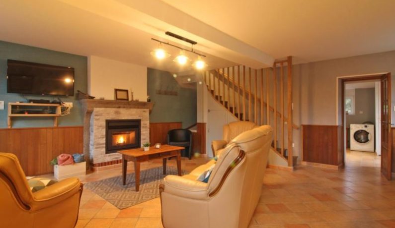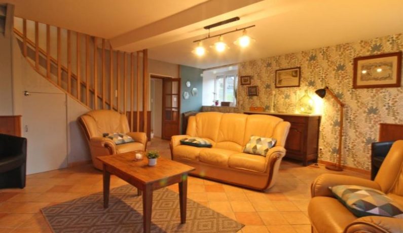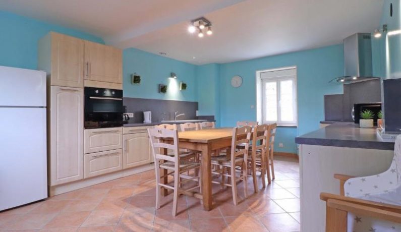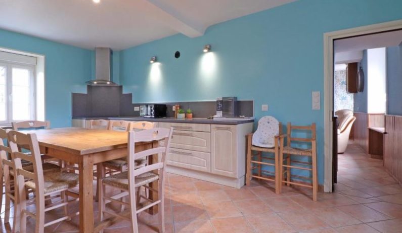 Maison ancienne indépendante, en formule tout inclus. Rez de chaussée : salle à manger avec cuisine, salon avec poêle à granulés, buanderie, salle d’eau, wc indépendant. 1er étage : chambre (2 lits jumeaux 1 personne), chambre (2 lits jumeaux 1 personne), chambre (petit lit enfant, lit bébé), salle d’eau avec wc. 2ème étage mansardé : chambre mansardée séparée en 2 espaces (3 lits 1 personne et 2 lits 1 personne). Cour close à l’Est et jardin clos coté Ouest de 500 m². 1 chien accepté sur demande.