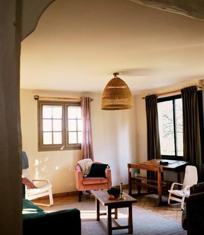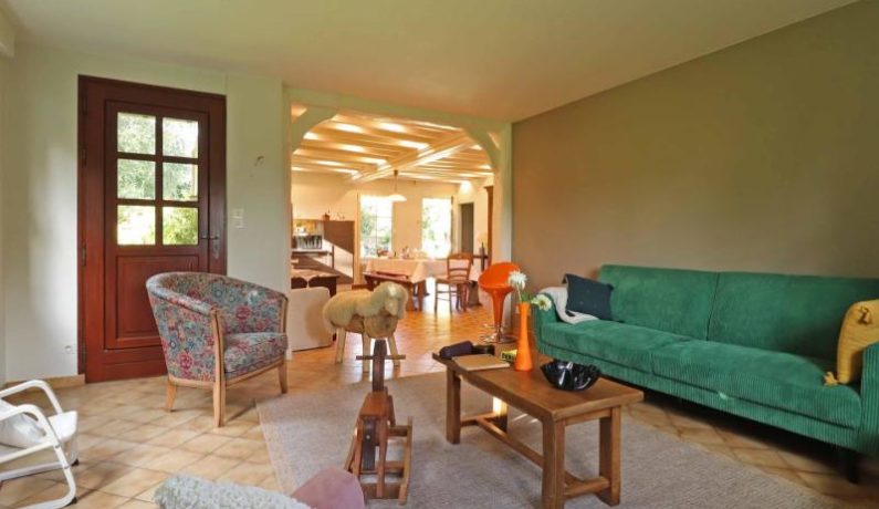 Maison de pays indépendante avec chauffage bois et électrique inclus : – Rez de chaussée : séjour avec coin cuisine et poêle, seconde cuisine équipée avec piano de cuisson, salon avec TV, chambre (lit 2 personnes 140 x 190 cm équipé de couverture), salle de bains avec baignoire et double vasque, wc séparés. – Etage : palier avec coin lecture et jeux pour enfants, chambre (lit 1 personne équipé d’un matelas de laine neuf et couverture), chambre (lit 2 personnes 160 x 200 cm équipé de couverture, lit enfant) avec lavabo et dressing. Jardin arboré non clos 7000 m² et verger. Abri voiture et garage à vélos (vélos à disposition). Possibilité borne de recharge pour véhicule électrique à 100 mètres (avec supplément).