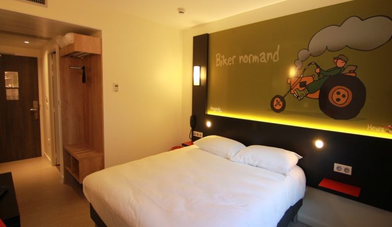 Bienvenue à l’hôtel Ibis Styles de Flers où la Normandie est mise à l’honneur avec une décoration originale et un design contemporain. Dès l’entrée, le tapis de l’hôtel signé HEULA vous accueille. Le ton est donné ! Nos chambres sont aux couleurs de notre région grâce aux tableaux humoristiques HEULA. Une salle de Fitness est mise à disposition des sportifs, le bar Lounge vous permettra de vous détendre. L’hôtel est à proximité du centre-ville, de la gare, des restaurants et des commerces. Egalement à proximité du parc du château de Flers pour une promenade ou pour les plus sportifs, un footing. Au cœur de la Suisse Normande, à mi-chemin entre le Mont Saint Michel et les plages du Débarquements.