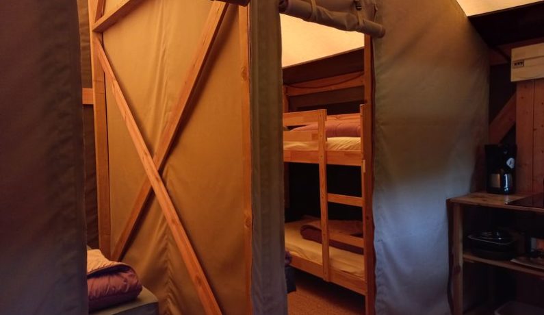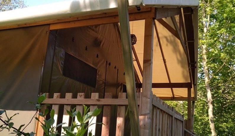 Campez au-dessus de la rivière dans une jolie tente sur pilotis, flânez sur une belle terrasse pour vivre au rythme de la nature et de la rivière, la tradition du camping avec son confort.