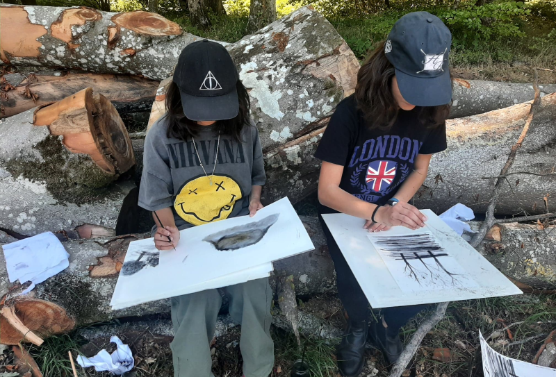 Balade et collecte du bois, fabrication du fusain, puis atelier dessin.